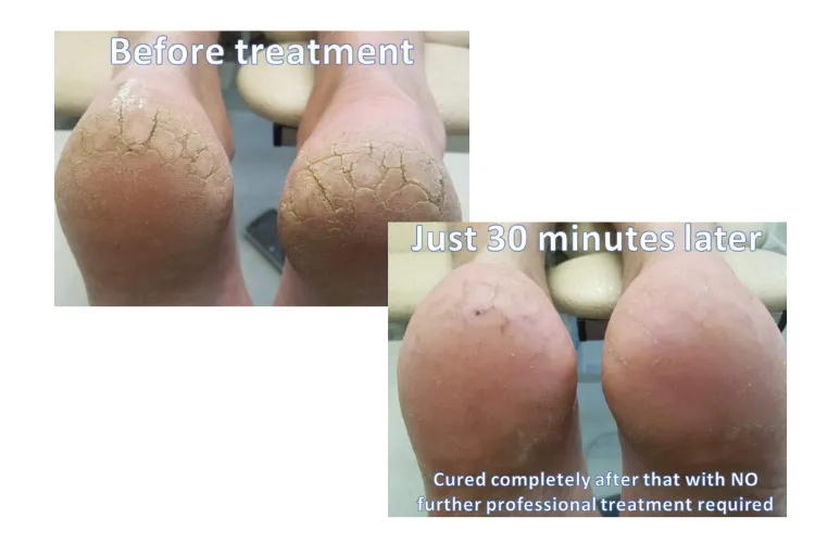 Advanced Care for Severe Cracks: For deeper cracks that have reached the dermis (the layer of skin where nerves and blood vessels are located), we may use medical-grade glues to close the fissures, special dressings to protect the area, and heel sleeves to keep the skin moisturised and promote healing. In some cases, if the cracks are infected, appropriate treatment will be provided to ensure proper healing.